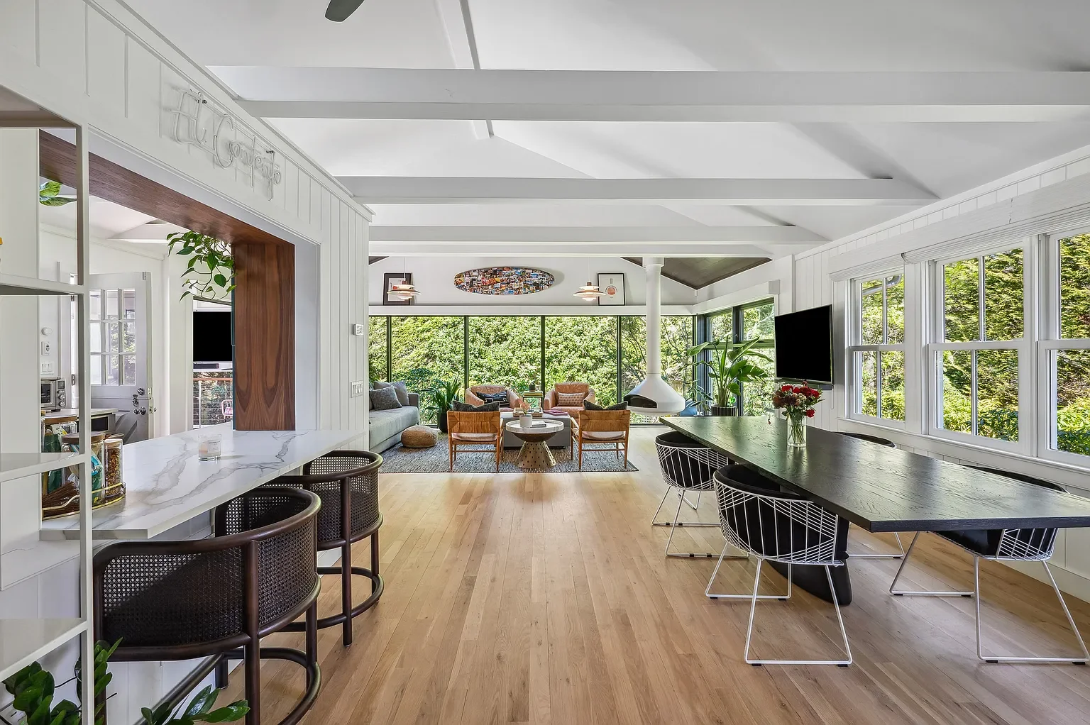 A perfect escape in East Hampton. This immaculate modernist home settled on half an acre of beautiful land, effortlessly fuses the outdoors with indoor living reflecting pure architectural excellence and modern convenience